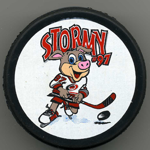 Stormy! Not sure but this may have been the 2005 Slapshot Sunday puck.
