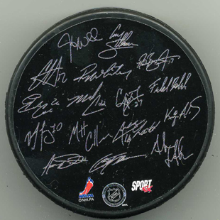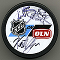 NHL on OLN. At Game 1 of the Finals, an OLN producer said "Good Cup, kid!" and gave this to the B-Man. Signed by the OLN guys Ed Olczyk, Bill Clement, Keith Jones).