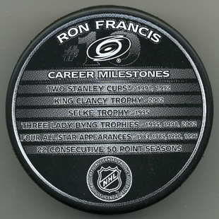 Ron Francis Night. January 28, 2006. Lists Ron's milestones.