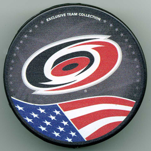 Hurricanes USA souvenir puck. No manufacturer listed, side says "Made In Czech Republic".