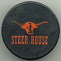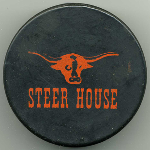 Rebels "puck night" puck, sponsored by the Steer House restaurant (there was one on Brambleton near 419).