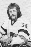 Another photo of him. After a season with the Charlotte Checkers, he was a Rebel in 1973-74 and a fan favorite. He wore #34 which you see on his blocker, but in this photo for some reason he's wearing Camille LaPierre's #11 jersey.
