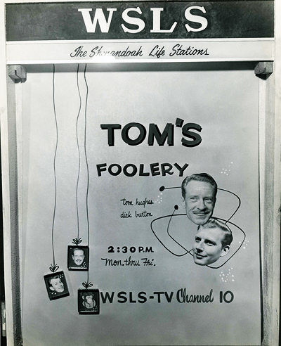 Within a month of the sign-on of WSLS-TV, Tom teamed up with fellow WSLS personality Dick Burton for a television version of "Tom's Foolery." The show became a regular feature on Channel 10 that aired Monday through Friday from 2:30 to 3:00.