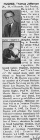 In 1946, after getting out of the Army, Tom joined the staff of WSLS radio as a news editor. But in 1947, he became a staff announcer and disc jockey. Tom's programs included "The Sunny Side of Seven," "The Mail Bag," and a program full of light-hearted fun and mayem called "Tom's Foolery." As soon as television came to WSLS in December, 1952, Tom Hughes began work in that medium.
