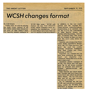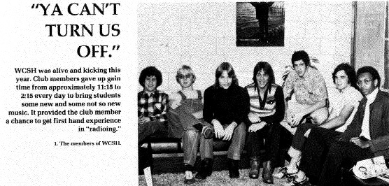 After Garrett and Beach graduated in 1976, the station stumbled and soon was no more. Dave Holtzman tried to keep it together but was hampered by the fact that over the summer, somebody ripped off some of the equipment and there was no money to use to replace it. (The staff of WCSH, being the "big stars" that we were, found it below our dignity to sell doughnuts, wash cars or do any of the other things high school clubs did for money. We had our pride, but we were broke. Kind of like REAL radio!!!!)