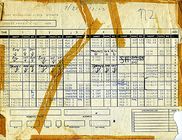 It's important to stop here and note that, at about this same time, Cave Spring High School had just implemented "Modular Scheduling." The year was divided into six-day "cycles" with each day being known as "Day 1", "Day 2", etc. Each "day" was then divided into 15-minute segments called "Modules". Classes consisted of IA's (Inter-Actions, each two modules long, where you were supposed to meet in small groups and discuss that week's material), lectures (usually three) and labs (three or four).