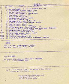 Well, the official WCSH Playlists were printed this way then distributed in the Cave Spring cafeteria. Note the way that Pat, the "S.M." (that's "Station Manager" -- not that other thing you're thinking) included record label info so that they looked just like the ones Chuck Holloway and Bill Jordan did at WROV. Also, WCSH was playing almost the exact same playlist as was WROV (and no, this had NOTHING to do with the fact that Pat hung out with Chuck, then Starr, at WROV several nights each week).