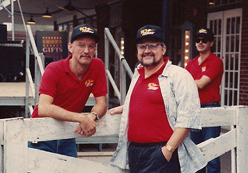 | Mike Bell and Mike Slenski at an event on the City Market in 1989. That's John Andrews in the background, looking on. |