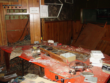 "When the FM station moved out everything really started to crumble. Equipment was being torn out every day and there was trash everywhere. So depresssing, because I felt that the place was special and historic and some, most or all should be preserved. One day Steve Cannon and I looked up in the attic and found old tapes with jingles and other sound. I wonder, if we didn't pull that out of the wreckage if all that would have been lost forever. When I say ghosts of the past, I say that with respect and reverence, and not just for the dead!"