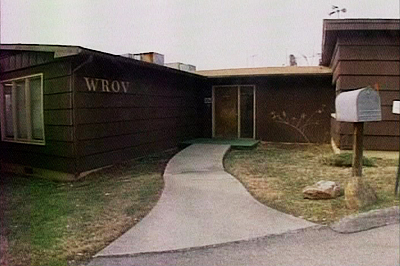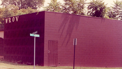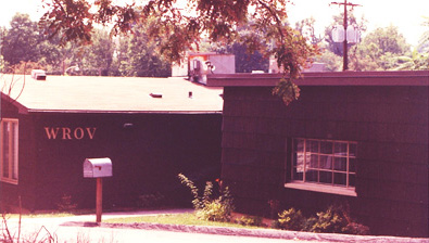 The "Flat" was a cinder block building, originally painted white, and was slightly higher up the hill from the Hut. Going from one section to the other required the traversal of two stairs. Big brown metal call letters spelling out "WROV" were mounted on the front. The only "window" on the front side of the "Flat" was a section of translucent glass blocks (like those used during those days at many liquor stores) near the ceiling to the DJ's left in the control room. Prior to the intercom / doorbell being installed with the "Jim Walters Home" edition, after-hours visitors had to reach up and tap on the glass and hope they got the DJ's attention.